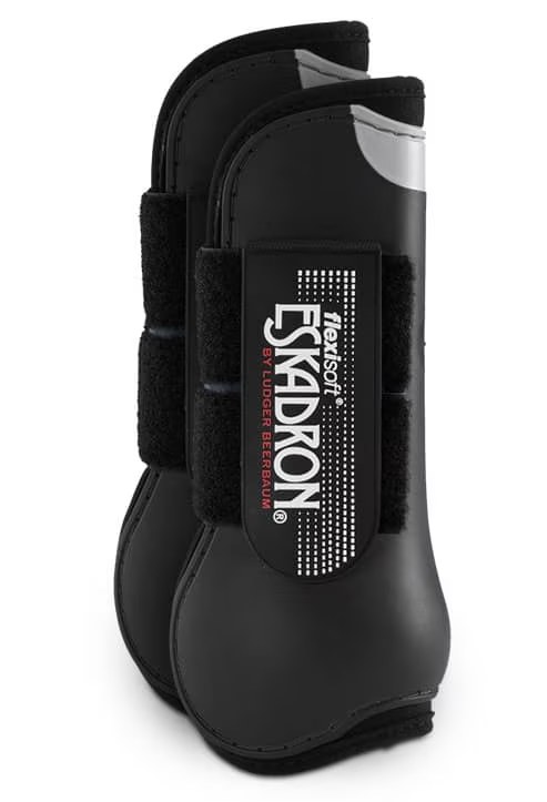 The best-selling Eskadron FlexiSoft Open-Front Boot combines a hard, protective outer with a soft, slip-resistant neoprene lining. These horse boots are shaped to allow complete freedom of motion. Eskadron FlexiSoft Open-Front Boots feature a hard, yet lightweight, TPE thermal molded plastic outer shell for protection. An easy-care neoprene lining helps prevent slipping and can be hosed clean. A soft, flexible area at the top of the boot back allows added horse comfort and freedom of movement, especially when jumping. Double hook-and-loop fasteners keep boots secure.