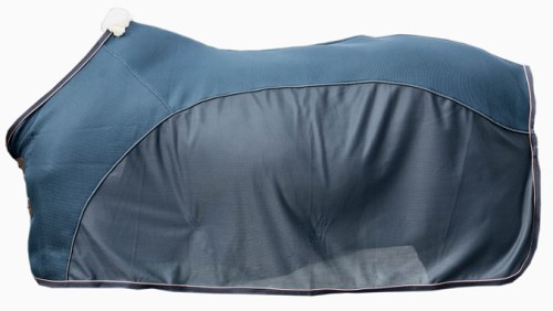 The cooler sheet is a combination of the fly sheet and the 3D spacer. On the back part: the 3D spacer, a light but strong honeycomb structure, will absorbs the sweat while keeping your horse dry. On the lower part: the Mesh fly sheet fabric does not only prevent bugs from bothering your horse but will also help air circulation. Which will gradually cool your horse down. The materials used for the Mesh Combo are specially designed, so hair doesn’t stick to it. which makes the cooler sheet very comfortable to wear.